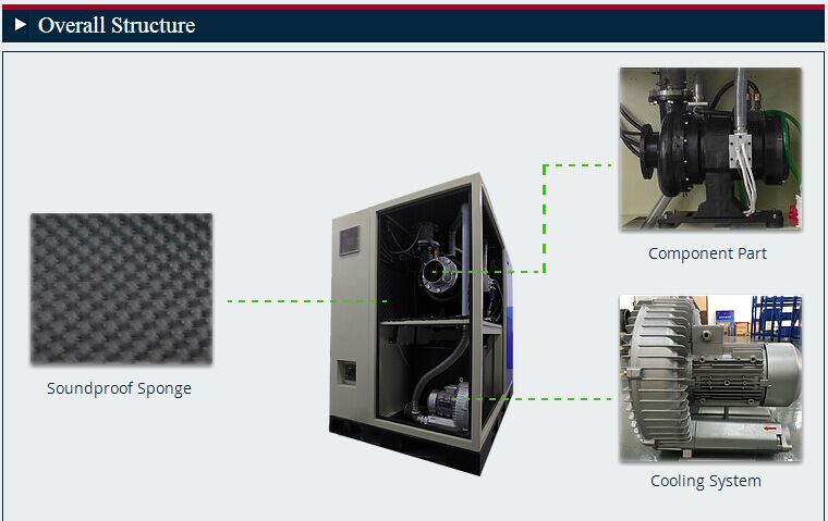 - Fully enclosed water cooling system and air cooling system are employed for heat dissipation of blower so as to guarantee the air blower stays at a stable and highly efficient operating status.